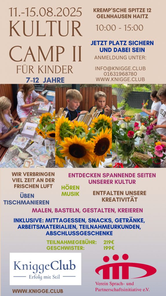 Unser Kultur Camp II findet in der letzten Ferienwoche 11.08.-15.08.2025 statt.