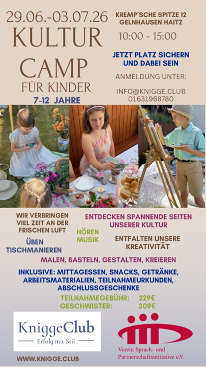 Im Kultur-Camp stehen Spaß und achtsames Miteinander im Mittelpunkt. Die Kinder nehmen an abwechslungsreichen Aktivitäten teil, lernen Neues und entfalten ihre Fantasie.